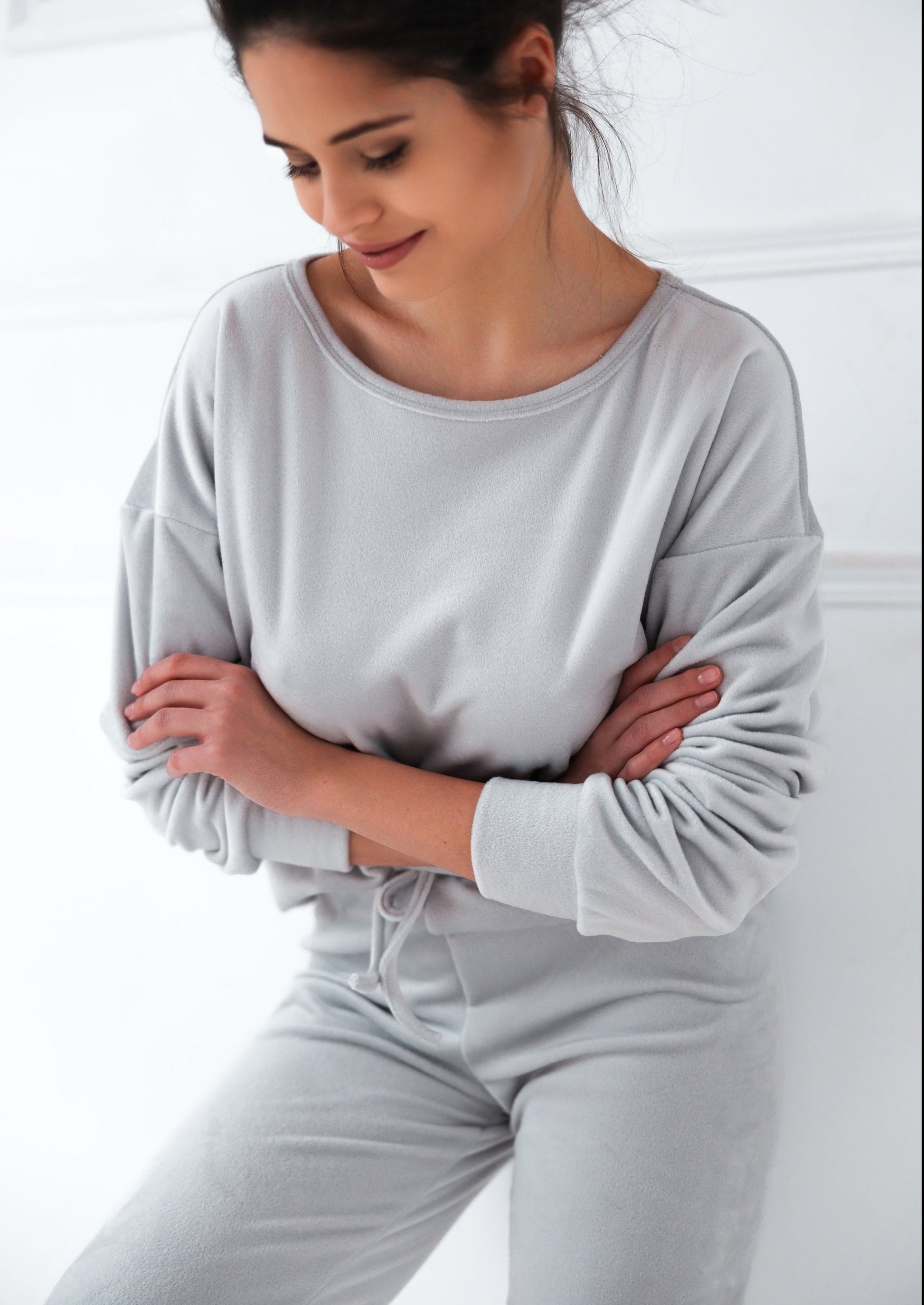- Gray pajamas set with pretty silver highlights, ultra-soft